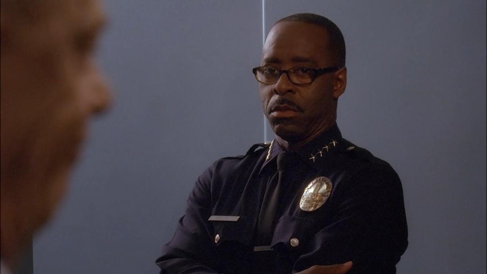 剧里还有些我觉得不妥当的处理。比如第一集就给Delk局长来个剧情杀,这个角色看起来是用完即弃,忽然出场抢走局长的位,忽然退场把局长的位让给Pope。上一季管理层更迭挖的坑,上一季不能让Brenda或Pope当上局长,调走Pope毫无疑问会少很多看头,而且JK西蒙斯还愿意演,演个交通部部长有点大材小用。Delk很快被权衡为剧情牺牲品。弃用他我觉得不是不行,但忽然倒地去世也太随便了。